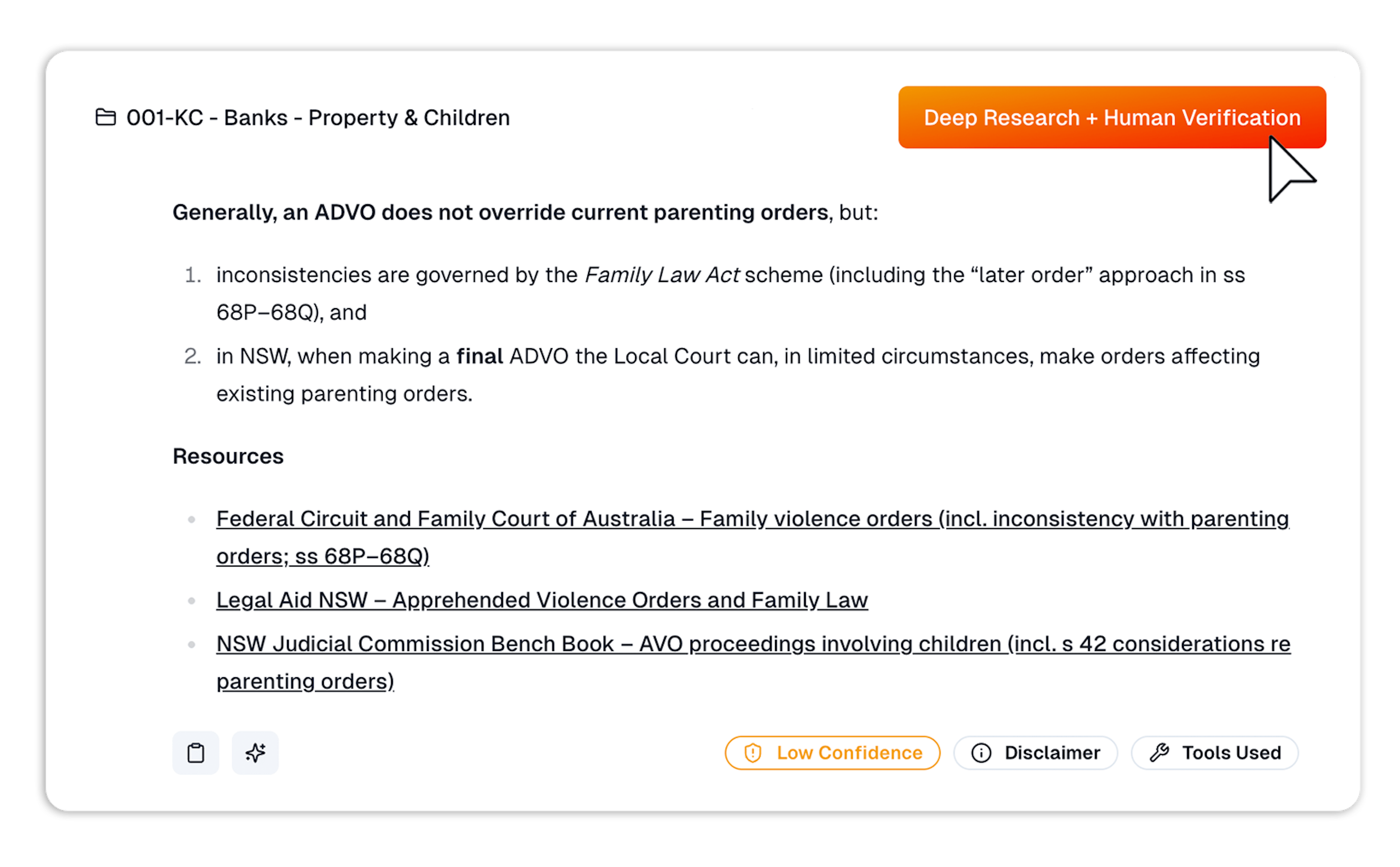 Get immediate, AI-generated answers to legal questions, navigating case law and legislation in seconds.