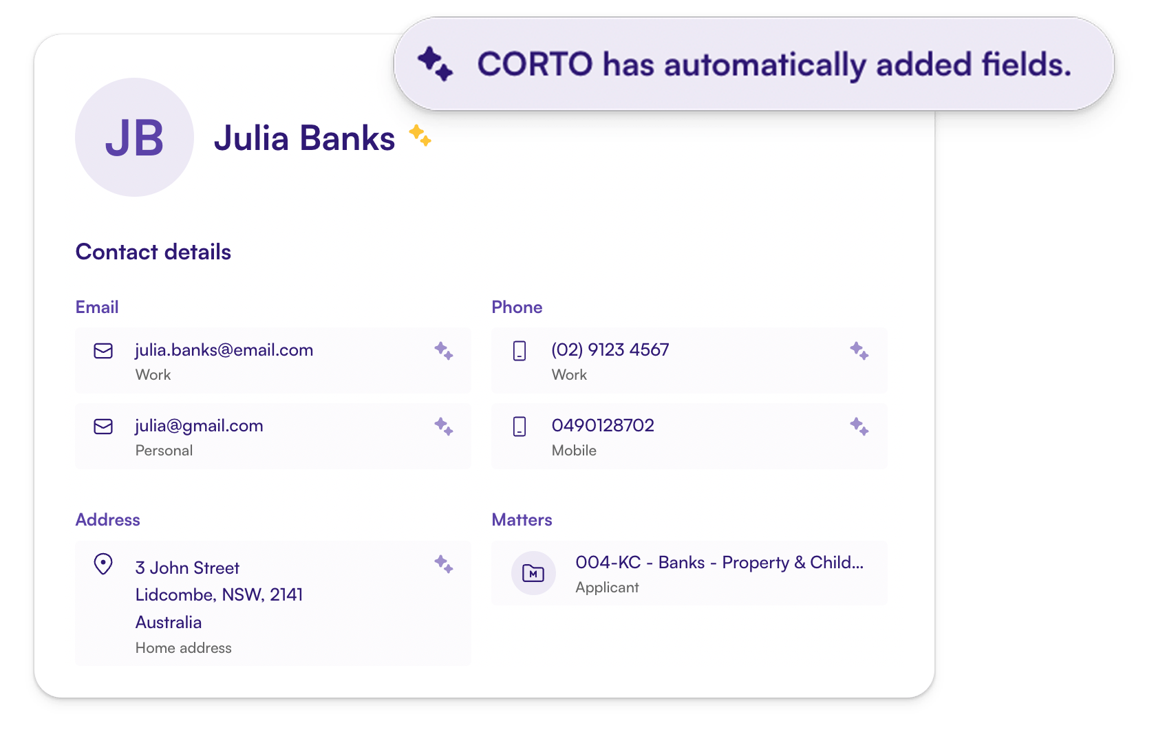 Automation saves time, but flexibility is essential. CORTO allows you to manage how AI supports your workflow: lock key details, manage contacts manually, or toggle auto-updates. You decide when automation adds value and when human oversight is paramount for your firm.