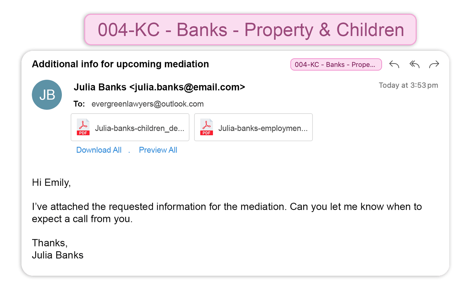 Eliminate non-billable email admin and ensure every client communication is filed to the correct matter.